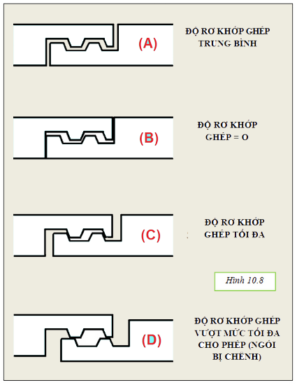 - Khe hở khớp ghép giữa 2 viên ngói được thiết kế với độ xê dịch cho phép (độ rơ) tối đa là 2mm. Tuy nhiên, nên lợp ngói sao cho độ rơ của khớp ghép giữa 2 viên ngói liền kề là 0.7mm – 1mm. Nếu độ này nhỏ hơn 0.7mm thì có thể dẫn đến bể ngói tại vị trí khớp ghép khi ta bước đi trên ngói do ngói bị “tức” dưới tác động của trọng lực tập trung lên điểm này.