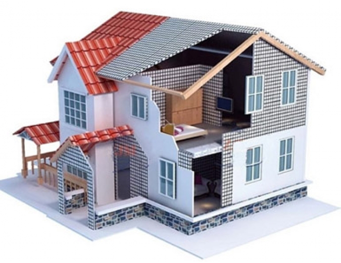Mái nhà được kết hợp bởi nhiều phần mái có hình dạng giống như các hình minh hoạ bên phải.
